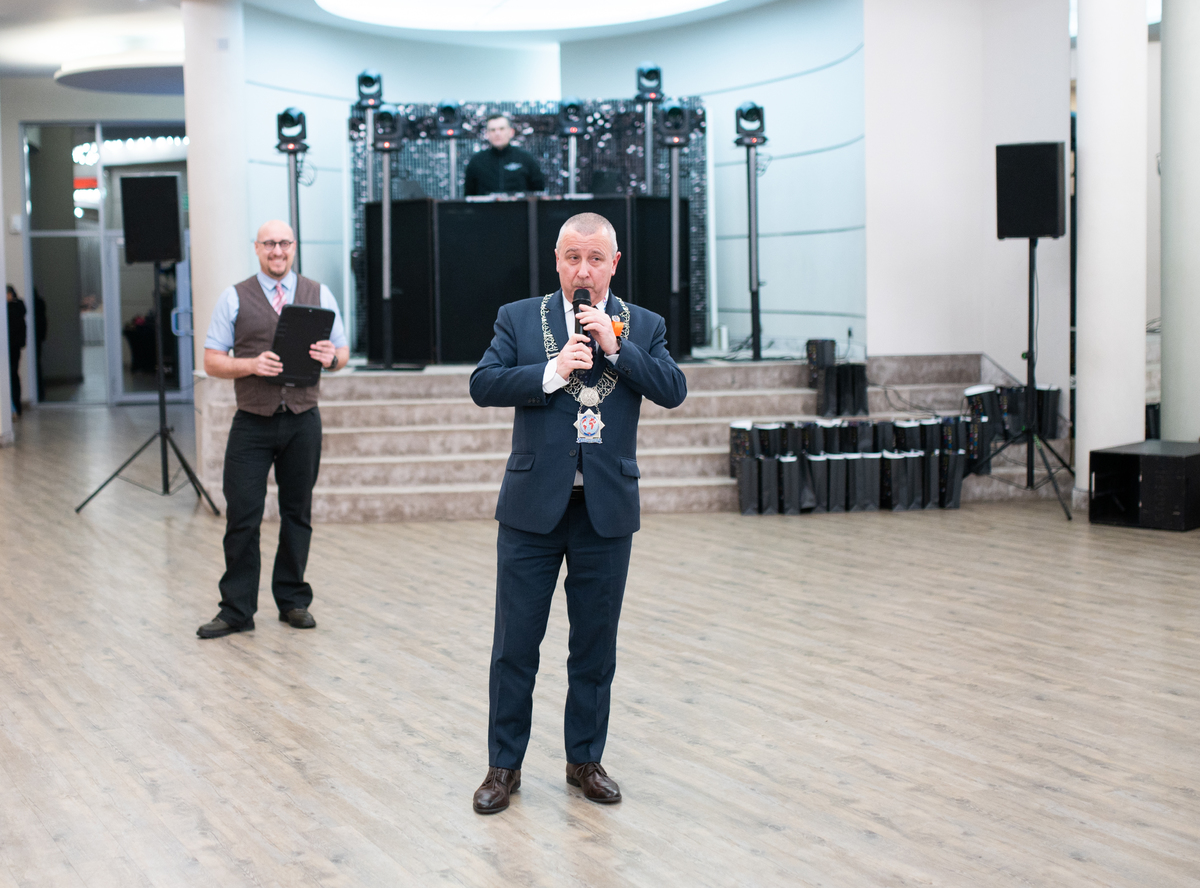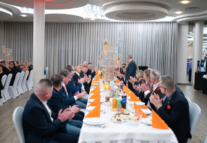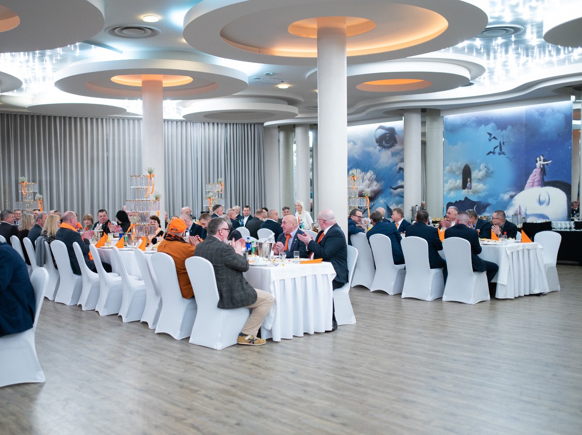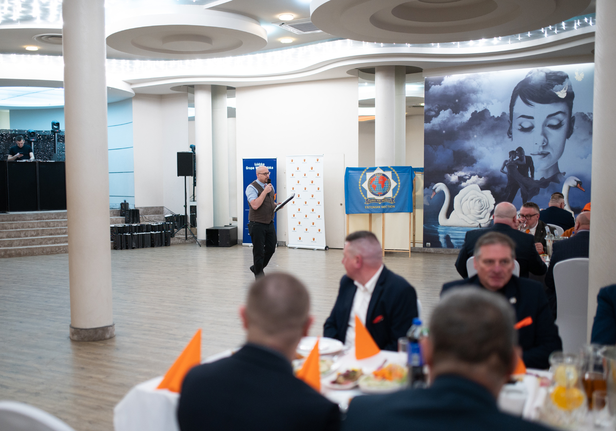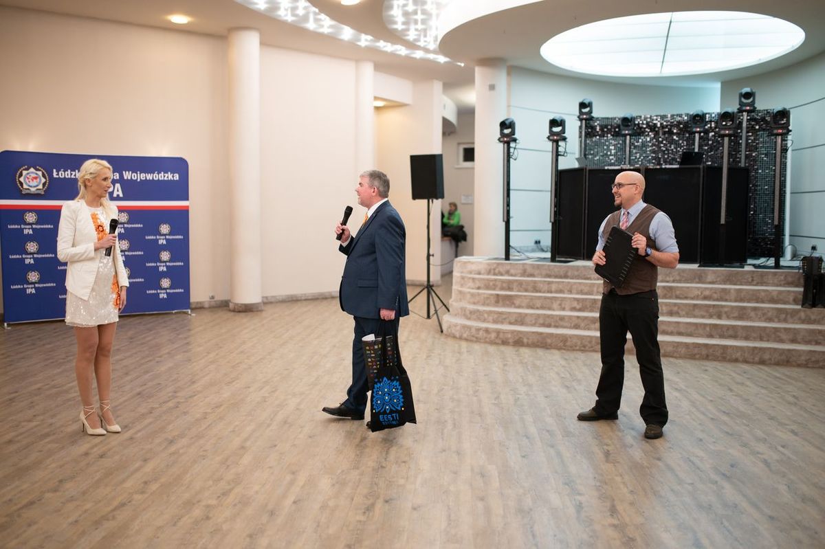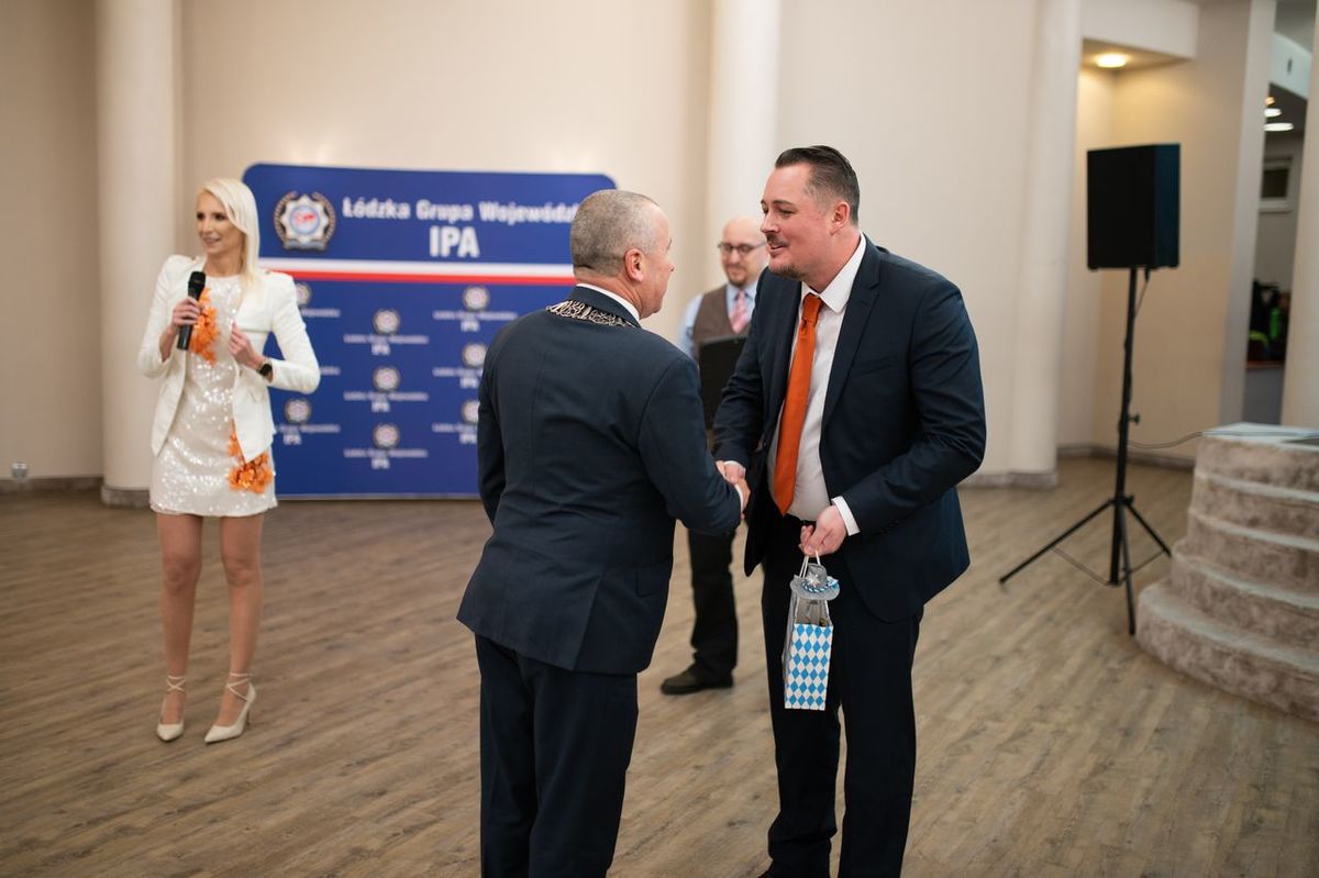 Szczególnym punktem wieczoru było wystąpienie tancerzy Jakuba Cyla i Moniki Chuchly z Fabryki Tańca Joanny Grabowskiej z Bydgoszczy. Artyści, posiadający bogate doświadczenie krajowe i międzynarodowe, zaprezentowali autorską choreografię przygotowaną na nadchodzące Mistrzostwa Polski, spotykając się z entuzjastycznym przyjęciem uczestników balu. Goście bawili się fantastycznie, a atmosfera wieczoru doskonale oddawała ideę jedności i wspólnoty. Noworoczne spotkanie krajów nadbałtyckich IPA to wydarzenie o charakterze cyklicznym — dwa lata temu odbyło się na Litwie, w ubiegłym roku na Łotwie, a w tym roku to właśnie Łódź miała zaszczyt gościć delegacje zagraniczne. Spotkanie zorganizowano w hotelu Jan Sander, położonym przy Rondzie Praw Kobiet — miejscu o wyjątkowej symbolice, które idealnie wpisało się w przesłanie wydarzenia. Trudno o lepszą przestrzeń do organizacji spotkania niosącego tak wyraźny społeczny przekaz. Wydarzenie odbyło się pod patronatem Pani Marszałek, a swoją obecnością Pomarańczowy Bal uświetnił Prezydent Sekcji Polskiej IPA Piotr Wójcik, podkreślając rangę i znaczenie spotkania w skali krajowej i międzynarodowej. Podczas wydarzenia wręczono również medale dla naszych kolegów: Krzysztofa Białka, Włodzimierza Szrajbera oraz Dariusza Zdanowskiego, a tytuł honorowego członka IPA odebrał Tadeusz Zagajewski.
